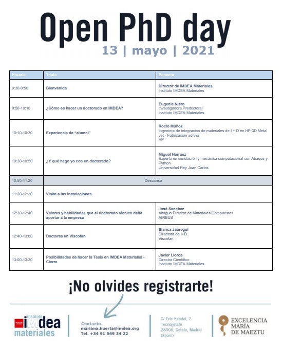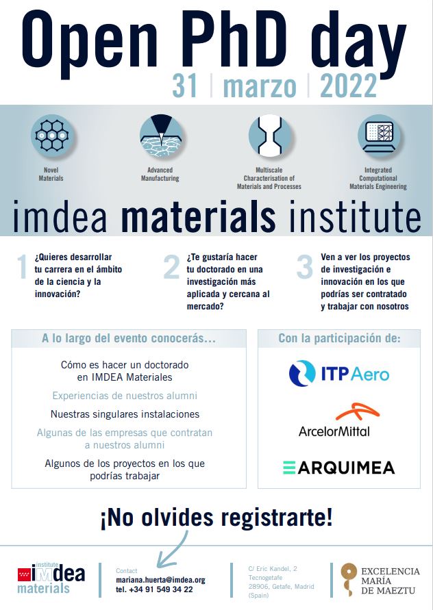 What can I do once I finish the Master? Why not do a PhD in materials? IMDEA Materials Institute invites you to learn about the relevance of doing a doctorate in a multidisciplinary and international research center through the experience of our alumni and collaborating companies such as ITP Aero,