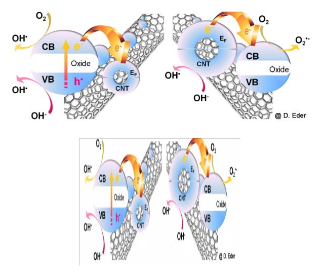 The aim of this project is to produce materials with superior photocatalytic efficiency by combining nanocarbons (Carbon NanoTubes (CNTs) and graphene) with photoactive nanoinorganics such as metal oxides. The potential of these new nano hybrids lies in three aspects: