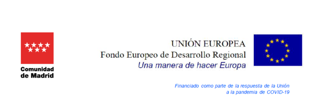“Este proyecto se encuentra cofinanciado por la Comunidad de Madrid y la Unión Europea, a través del Programa Operativo del Fondo Europeo de Desarrollo Regional (FEDER 2014-2020), financiado como parte de la respuesta de la Unión a la pandemia de COVID-19”.