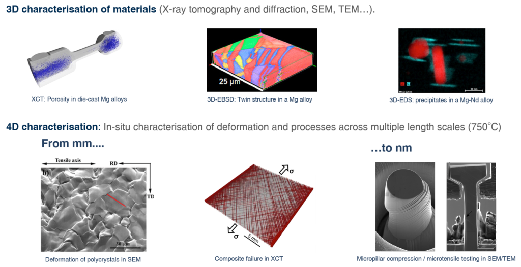 • Thermo-mechanical testing across several length scales: tension, compression, fatigue, creep, etc. in the scanning electron microscope and X-ray tomograph.