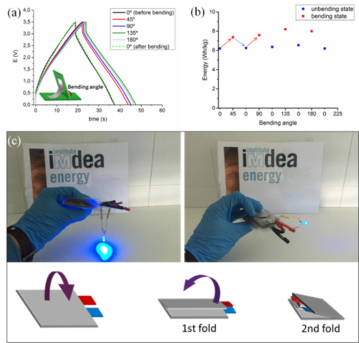 IMDEA Materials and IMDEA Energy Institutes have developed a laminar composite material simultaneously having excellent structural properties and high energy storage efficiency. The combinations of these properties enable using this multifunctional composite material as a structural component in the automotive and aeronautics fields, in portable electric and/or electronic devices, microelectronics, robotics, tools, energy generating systems (wind energy generating systems, photovoltaic energy generating systems, etc.), coupled to batteries, in cranes and construction equipment, in the textile/footwear industry, in home appliances.
